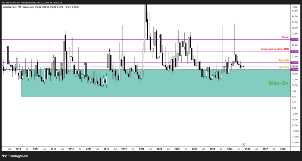 • 19.9 – 24.9 = Risk-Off → elevated volatility.